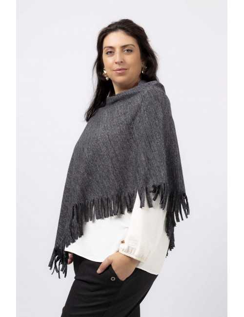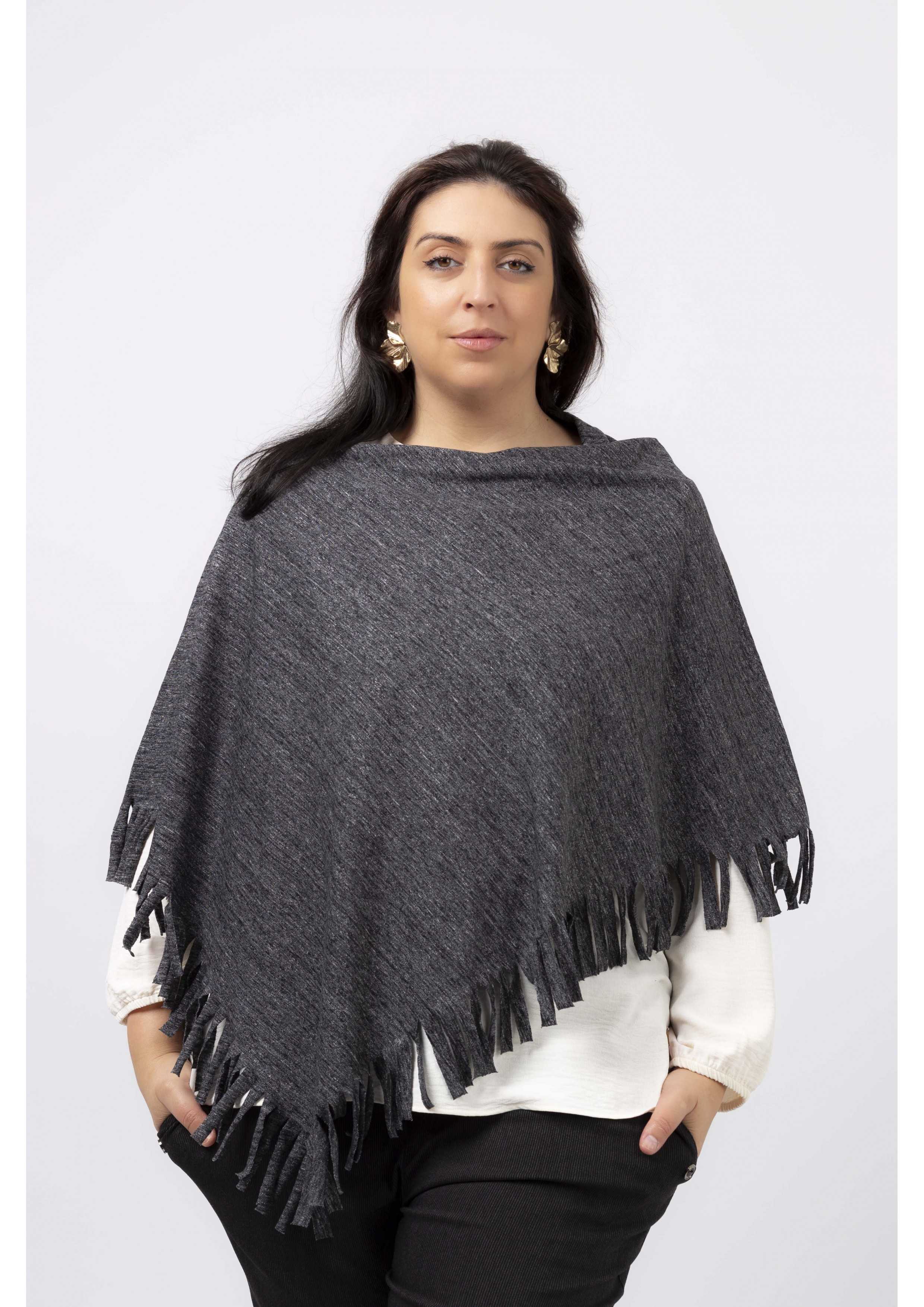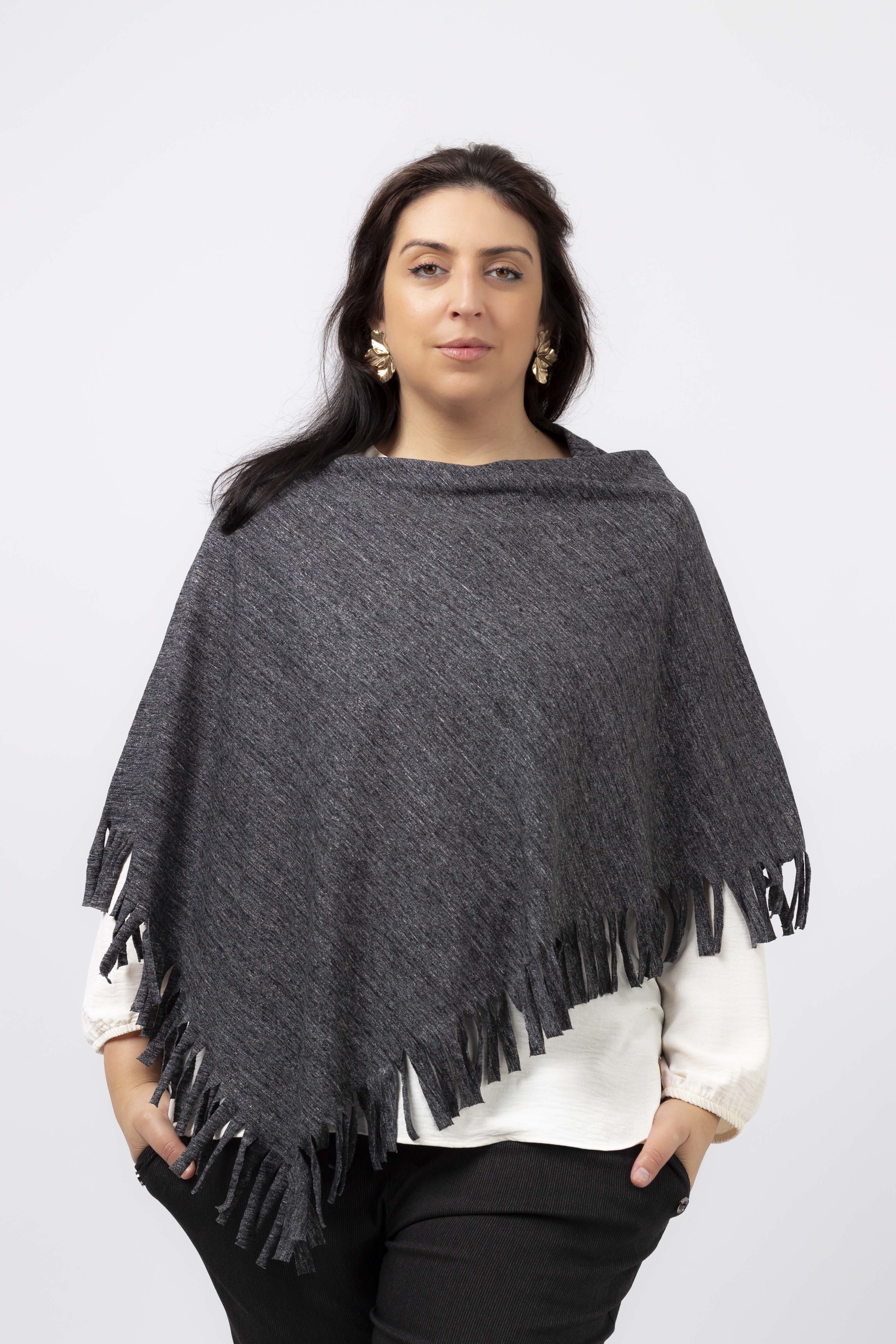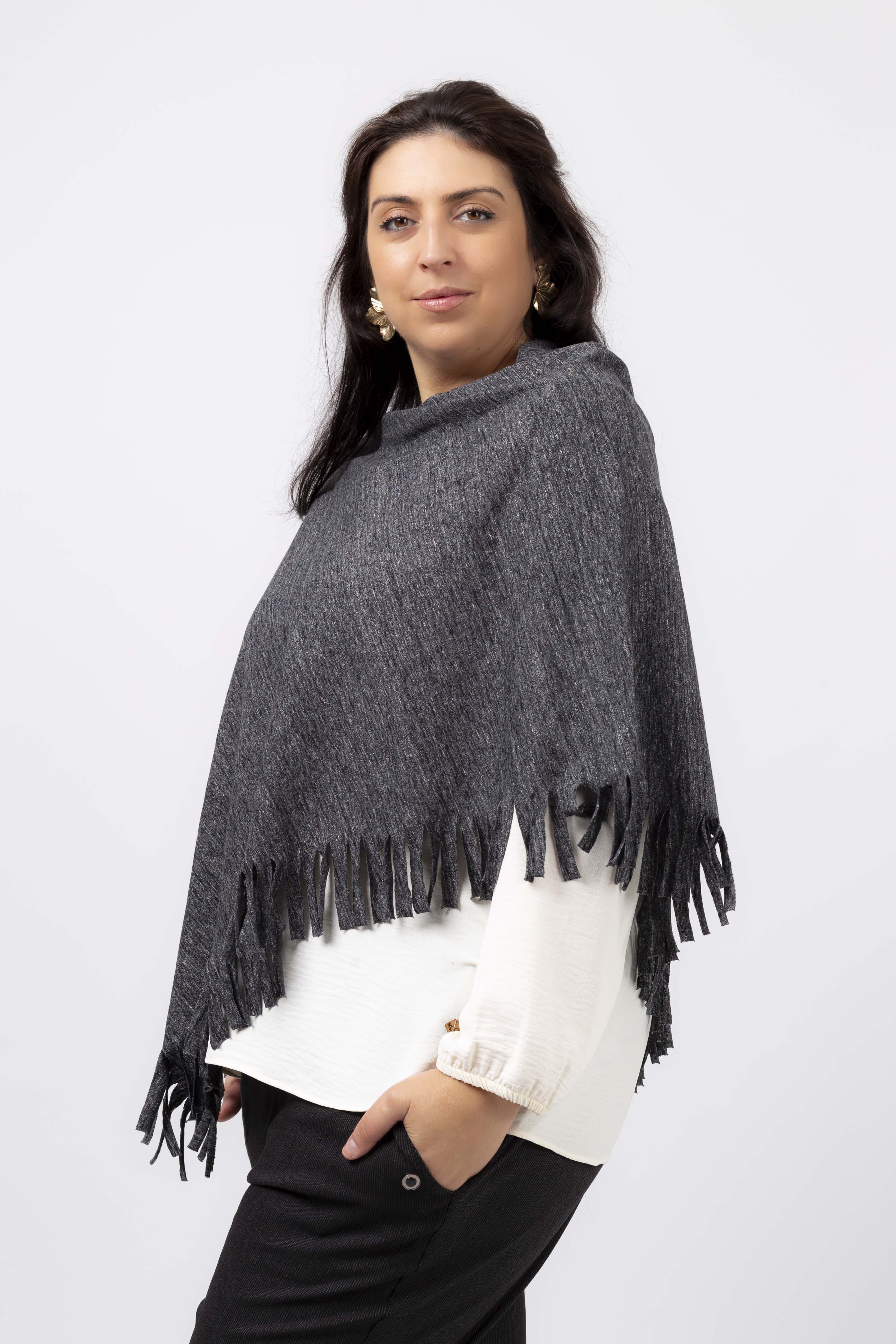 Poncho em malha mescla, pontas com flecos na própria malha.