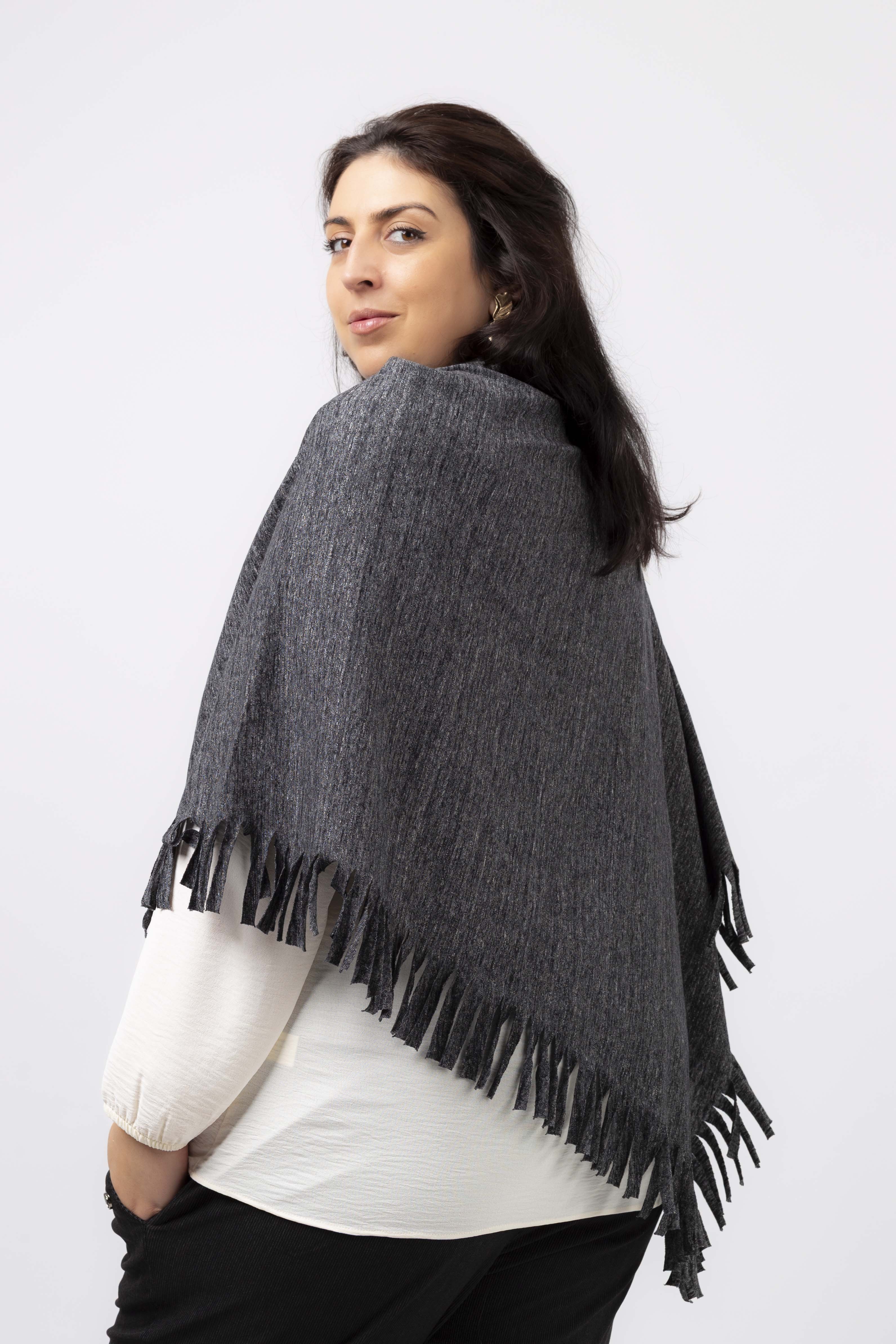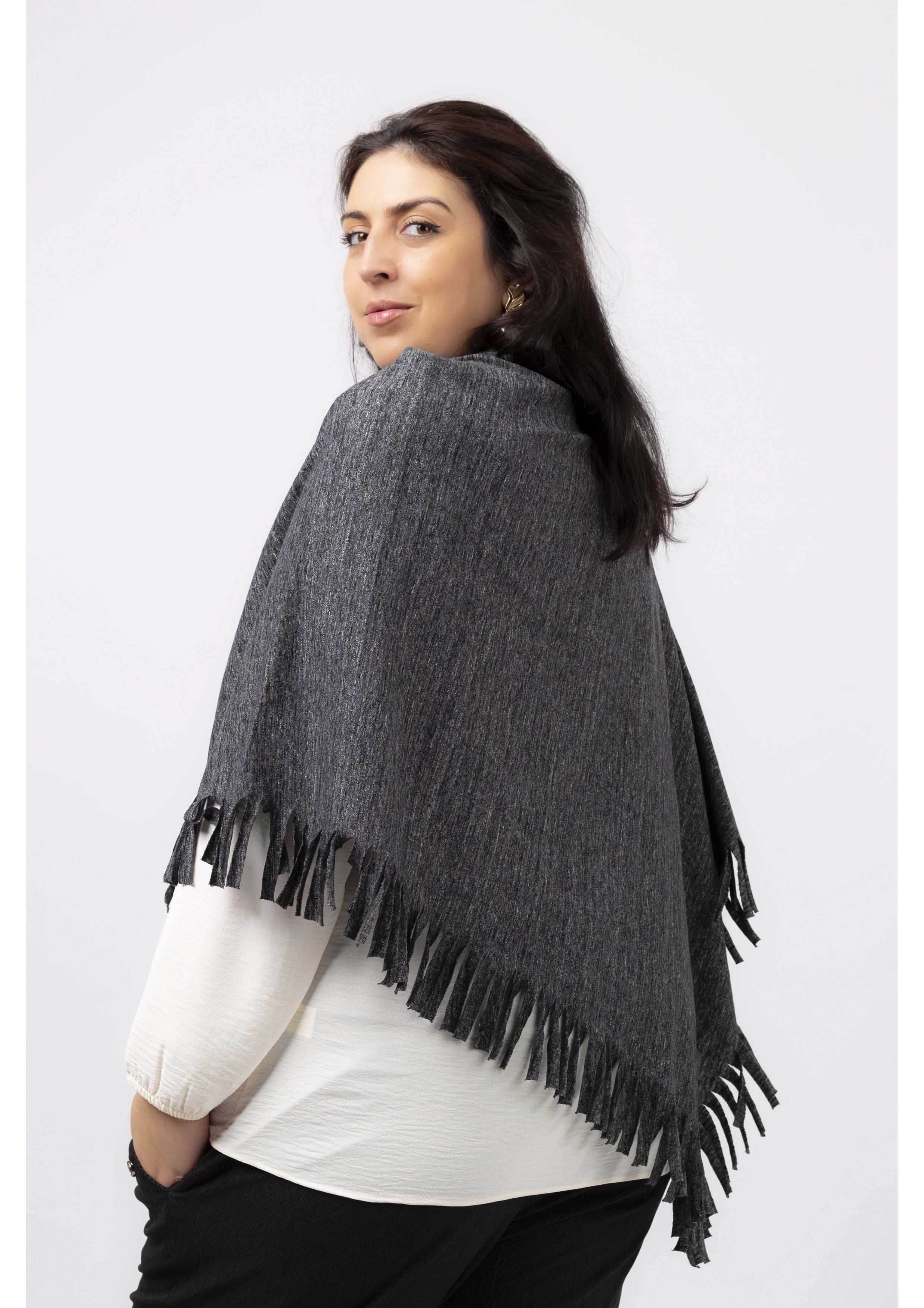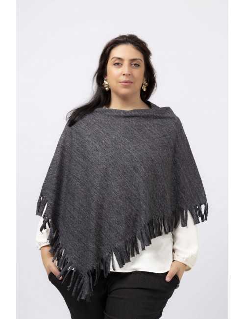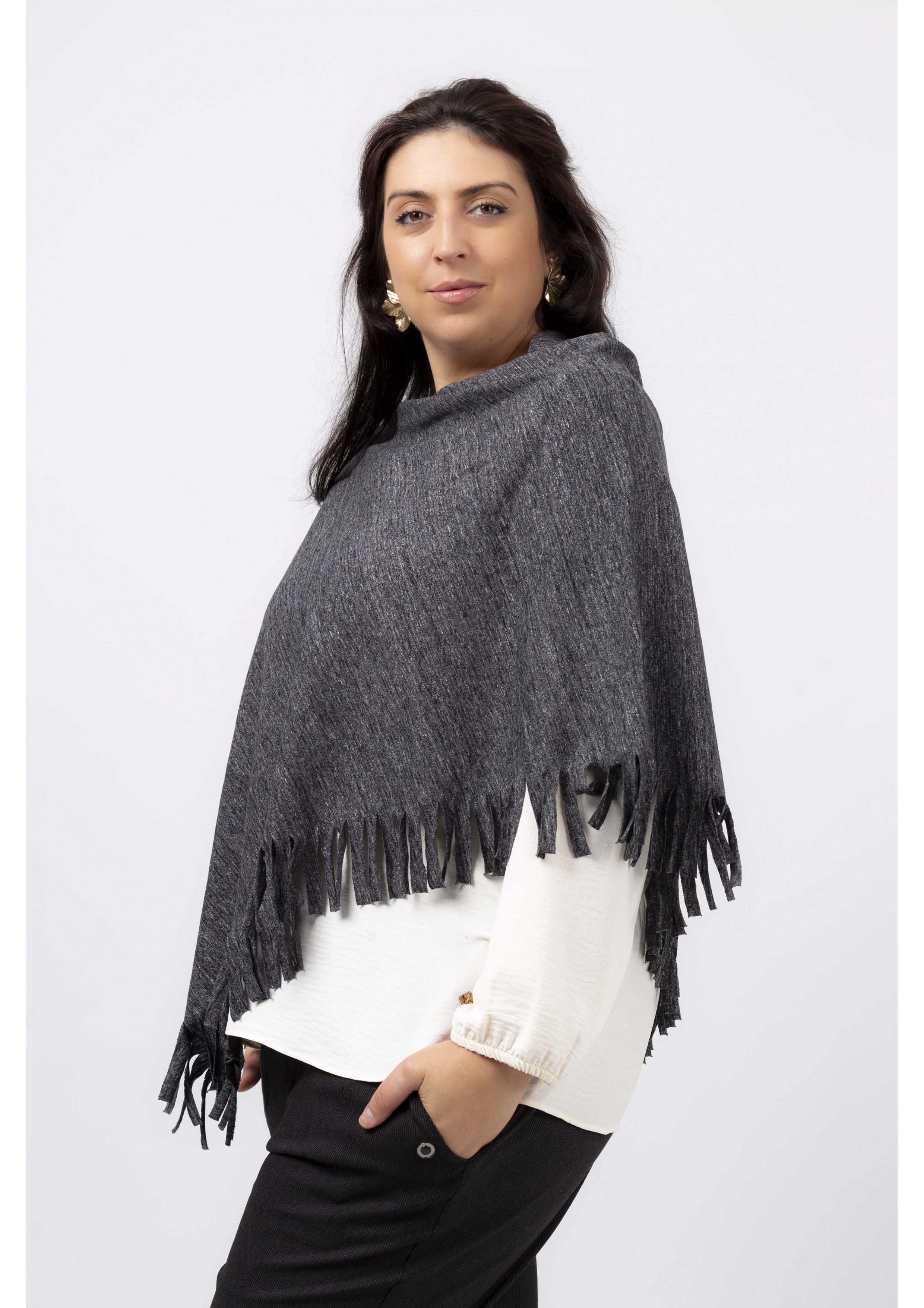 Poncho em malha mescla, pontas com flecos na própria malha.