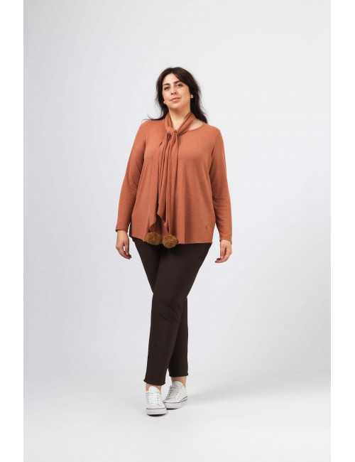 253070 - Calça em malha lisa canelada Coleção Outono Inverno Tamanhos Grandes