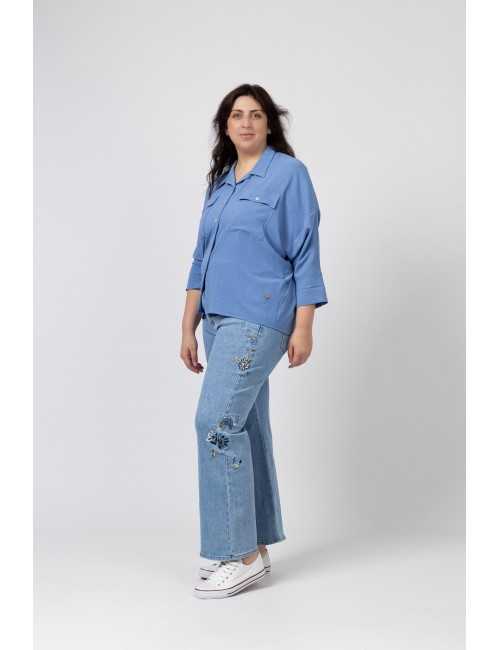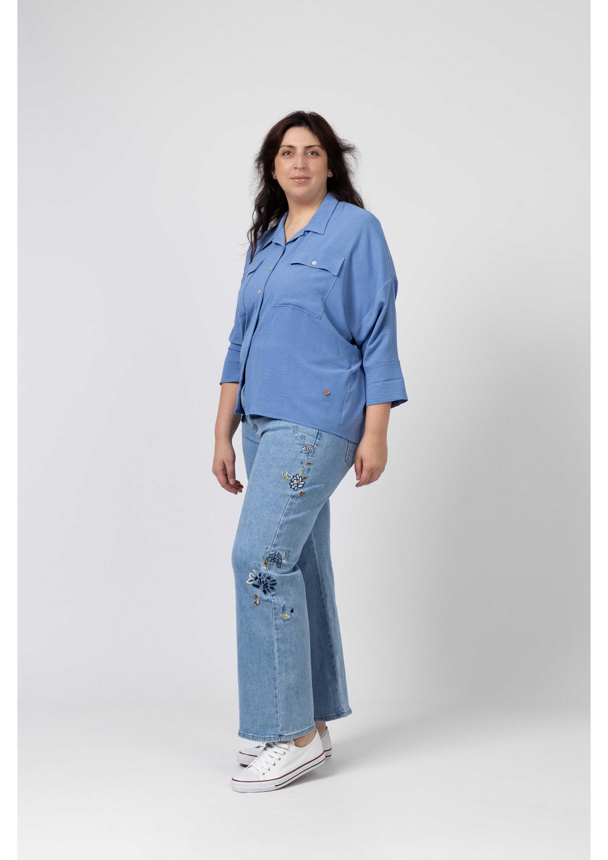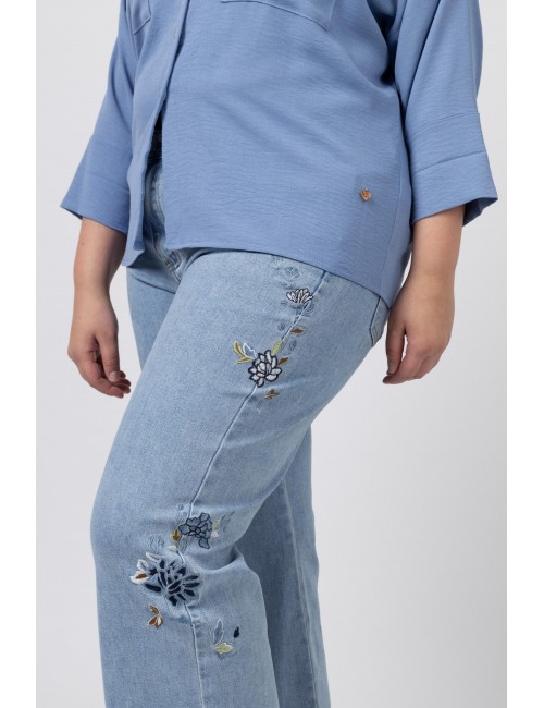 M120KJ014 - Calça de ganga com bordado Coleção Primavera Verão Tamanhos Grandes