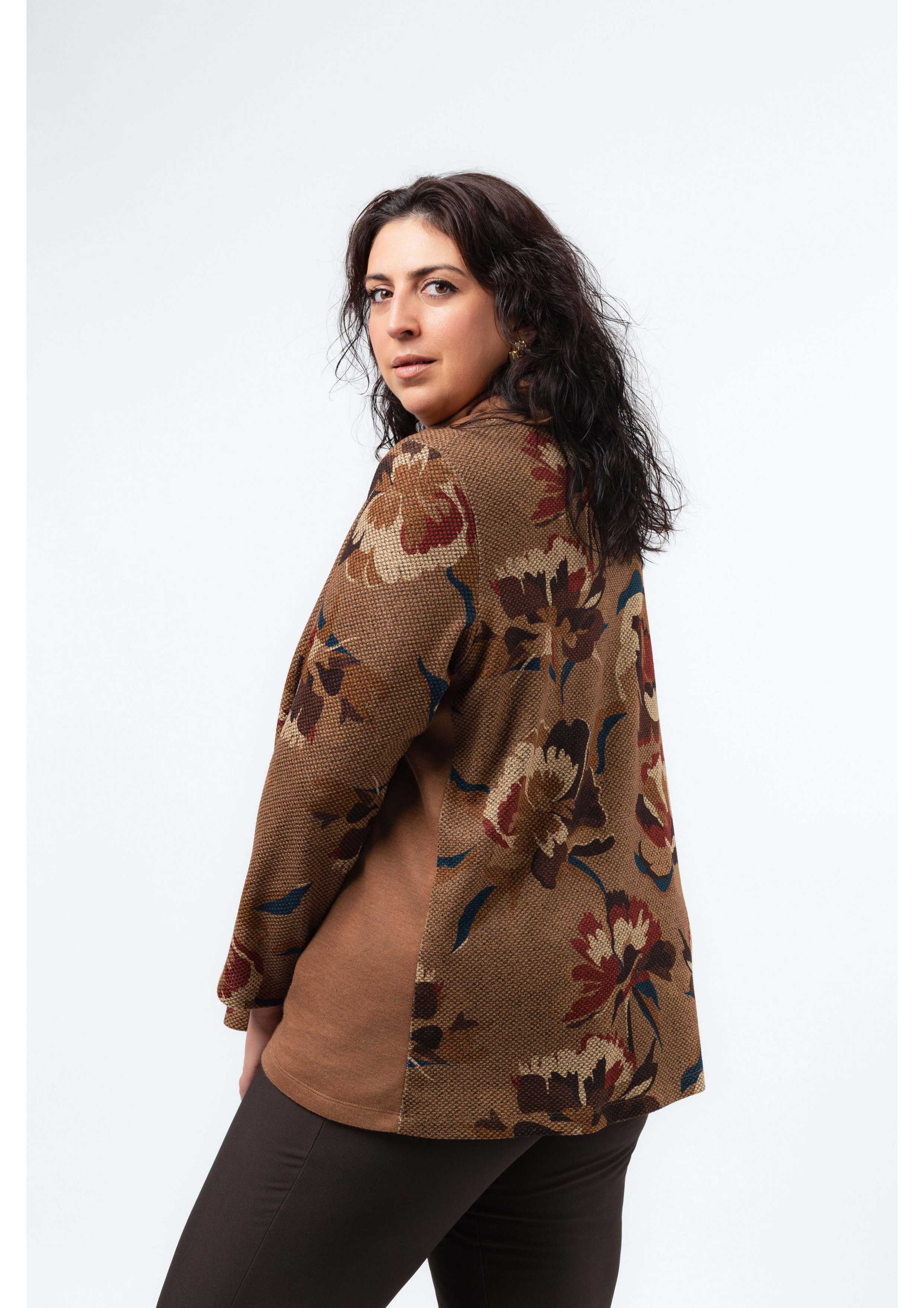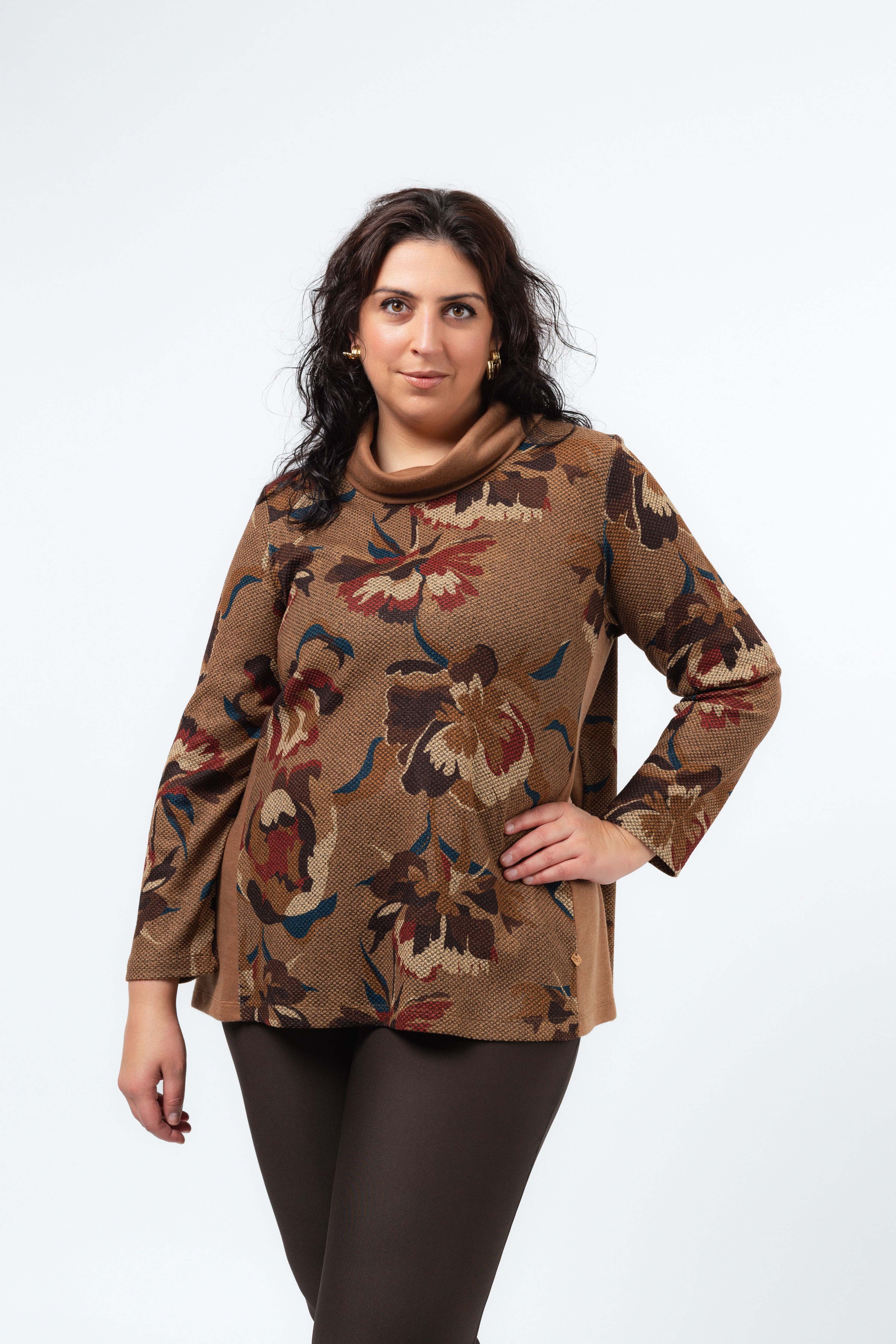 Túnica em malha estampada com encaixes laterais e gola em malha lisa. Modelo evasé, decote redondo. Disponível em Tamanhos Grandes Produto de desenho e fabrico próprio. Somos uma marca de confeção de vestuário com mais de 50 anos de experiência Modelo: Altura 1.82m e está a vestir o tamanho 3XL.