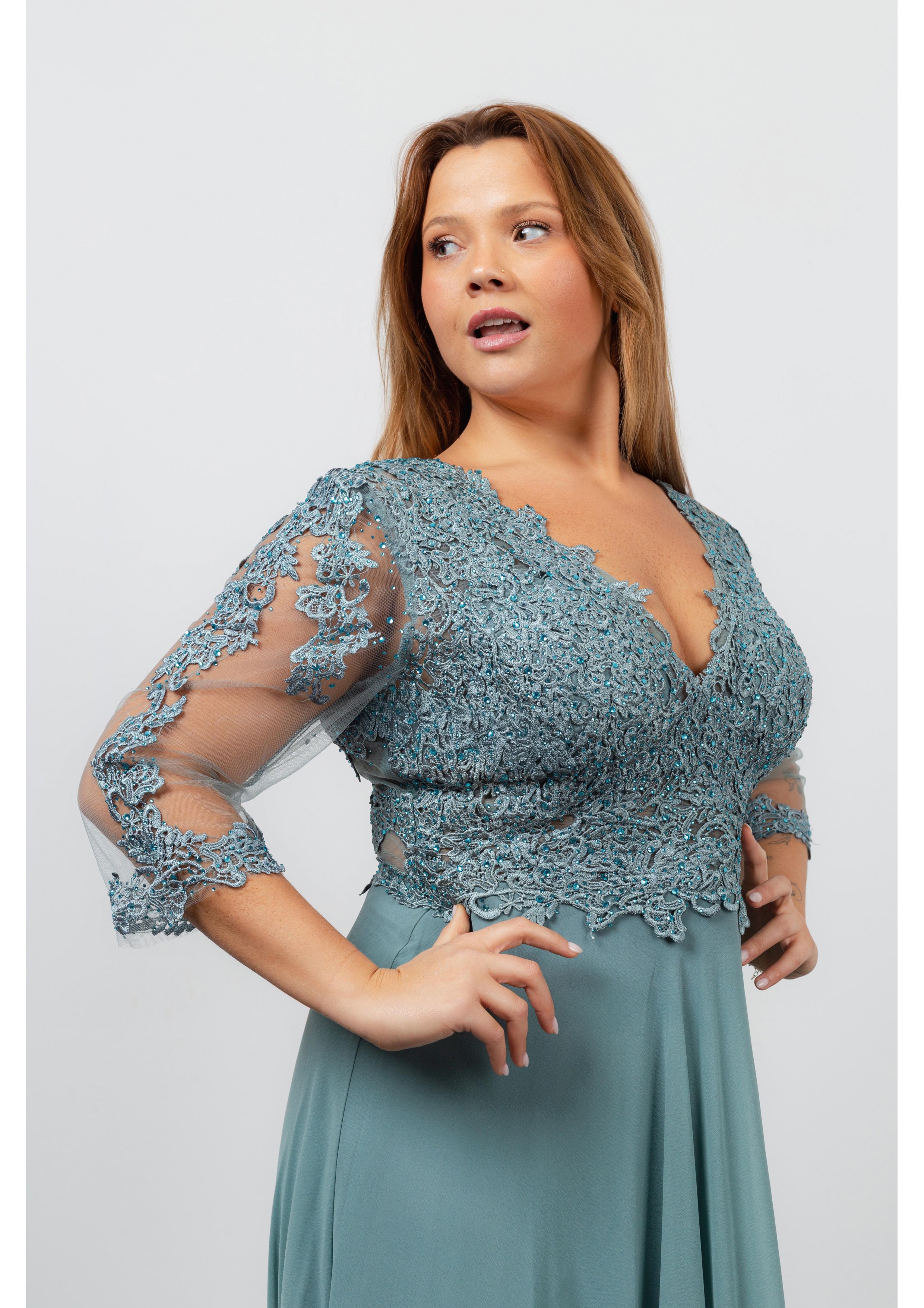 M816V9192 - Vestido em tecido liso Coleção Primavera Verão Tamanhos Grandes